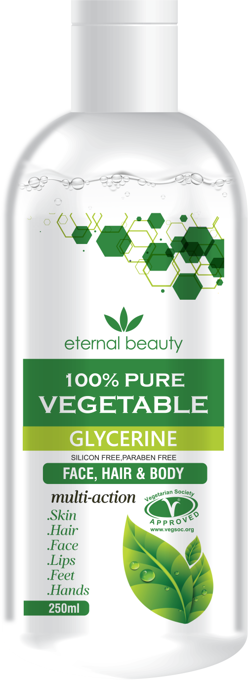 Unlock the secret to versatile and natural skincare with ETERNAL BEAUTY Pure Vegetable Glycerin 250ml. This multipurpose beauty essential is crafted from high-quality vegetable sources, providing exceptional hydration and nourishment for your face, hair, and body. Embrace the benefits of pure, plant-based care with this all-in-one product.