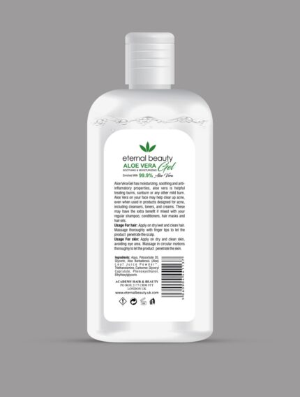 Rejuvenate and refresh your skin, hair, and body with ETERNAL BEAUTY 100% Pure Aloe Vera Gel 250ml. This multipurpose beauty essential harnesses the natural power of aloe vera to provide exceptional hydration, soothing relief, and nourishment. Perfect for all skin and hair types, our pure aloe vera gel is a must-have for your daily beauty routine.Product Highlights: